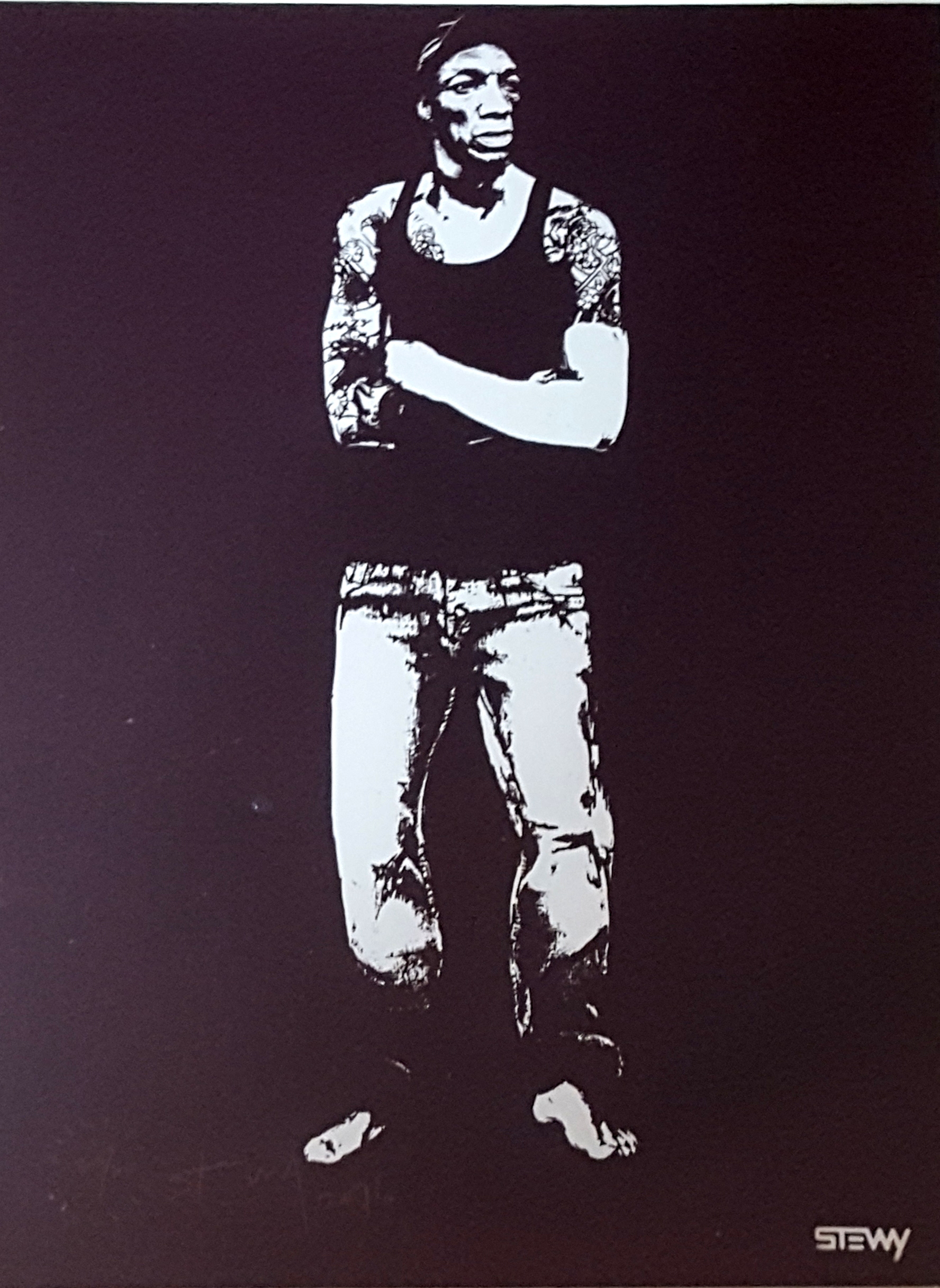 Street-artist Stewy’s work includes stencils of iconic figures, including Bristol legends Tricky and DJ Derek.