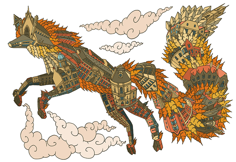 Titled Trinity Fox the illustration features some of the historical buildings in Old Market. Speaking about the work, Andy said; “The Trinity itself is an iconic building in the city and it's been a while since I've included it in any of my Bristol ‘creature-creation’ pieces. Also included in the ‘urban beast’ are buildings from the nearby Old Market area. I've been wanting to focus on Old Market for some time now, the buildings there are really interesting and have so much history.”