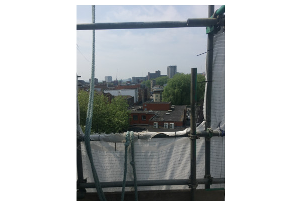 I slowly edge towards the edge of the scaffolding and can see Old Market and further beyond, is central Bristol. It is a marvellous view, if not incredibly high. Going down is much easier than going up. Shane and I clamber down the ladders, past the stonemasons, the glaziers and site workers. I am grateful for my feet being back on the ground.