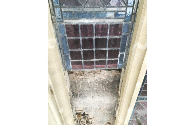 Kerry, resident stained glass window expert, is carefully removing broken glass from a window on the north side of Trinity. By eye he manually cuts out a shape from some glass he has and skilfully places the glass between the lead, seals it and moves onto the next piece. He stands back and on the left is a window yet to do, and on the right is a window that is done. The contrast is quiet impressive.
